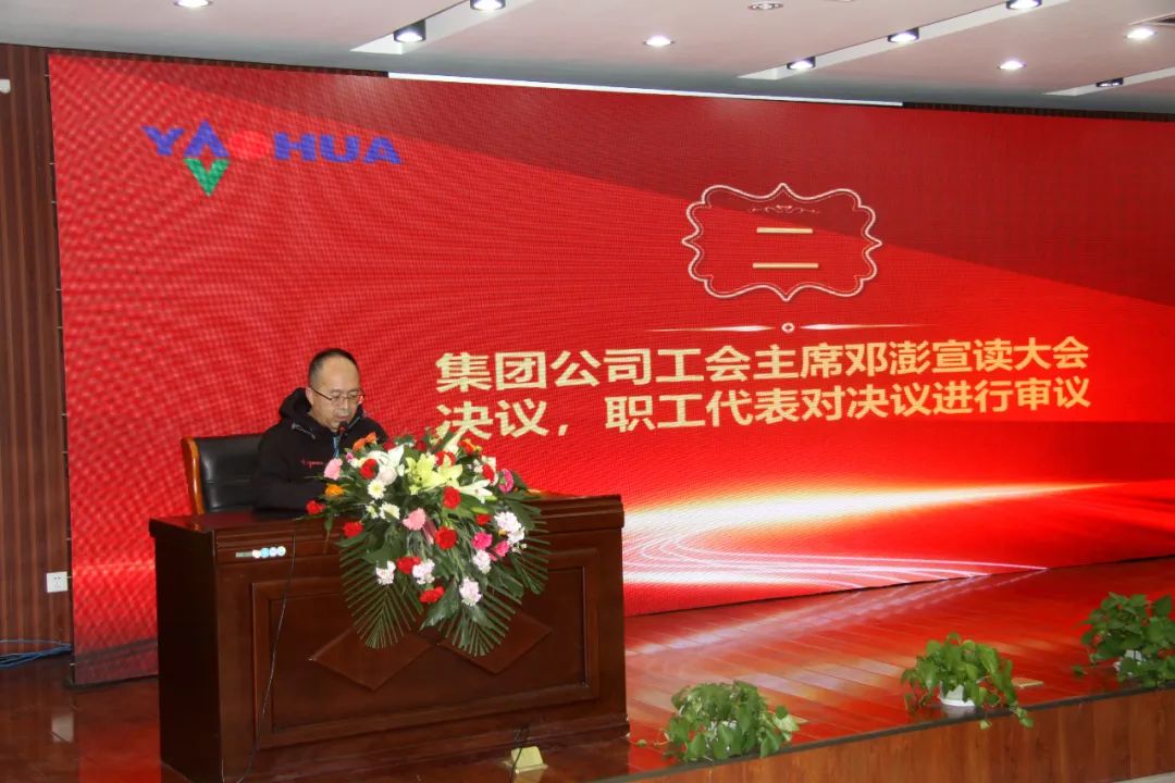 工會主席鄧澎宣讀了職代會決議,職工代表對大會決議進行表決。