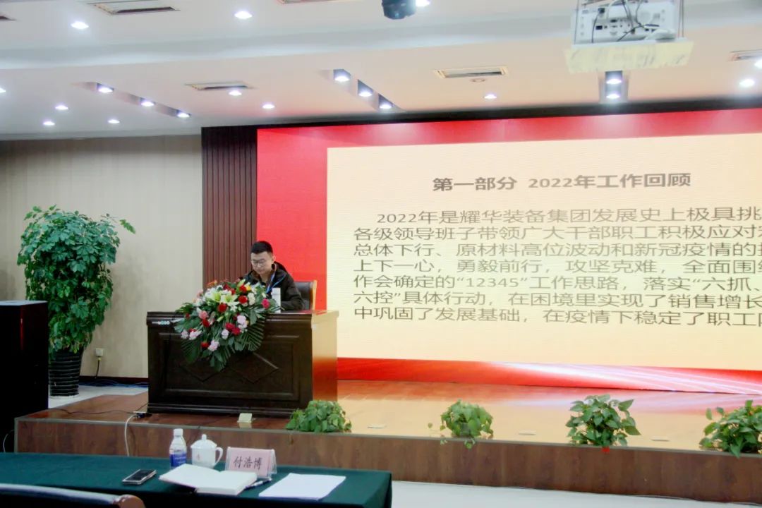 付浩博總經(jīng)理提出,2023年耀華裝備集團要全面貫徹“12366”總體工作思路,“1”即實施“一流人才戰(zhàn)略”,加速一流科研開發(fā)隊伍、一流市場營銷隊伍、一流生產(chǎn)管理隊伍建設(shè);“2”即推進“雙進市場戰(zhàn)略”,進軍大城市積極開拓業(yè)務(wù),進入大行業(yè)快速提升產(chǎn)值;“3”即堅持“三化產(chǎn)品戰(zhàn)略”,以“智能化、輕量化、功能化”為發(fā)展方向,實現(xiàn)產(chǎn)品功用和層次升級;“6”即各項工作“六個貫穿始終”,以人為本貫穿始終、科學(xué)管理貫穿始終、增量增收貫穿始終、自主創(chuàng)新貫穿始終、降本提質(zhì)貫穿始終、安全生產(chǎn)貫穿始終;“6”即實現(xiàn)“高質(zhì)量發(fā)展六大目標(biāo)”,激發(fā)高質(zhì)量發(fā)展動能、打造高質(zhì)量發(fā)展引擎、夯實高質(zhì)量發(fā)展基礎(chǔ)、做實高質(zhì)量發(fā)展保障、優(yōu)化高質(zhì)量發(fā)展結(jié)構(gòu)、筑牢高質(zhì)量發(fā)展根基。
