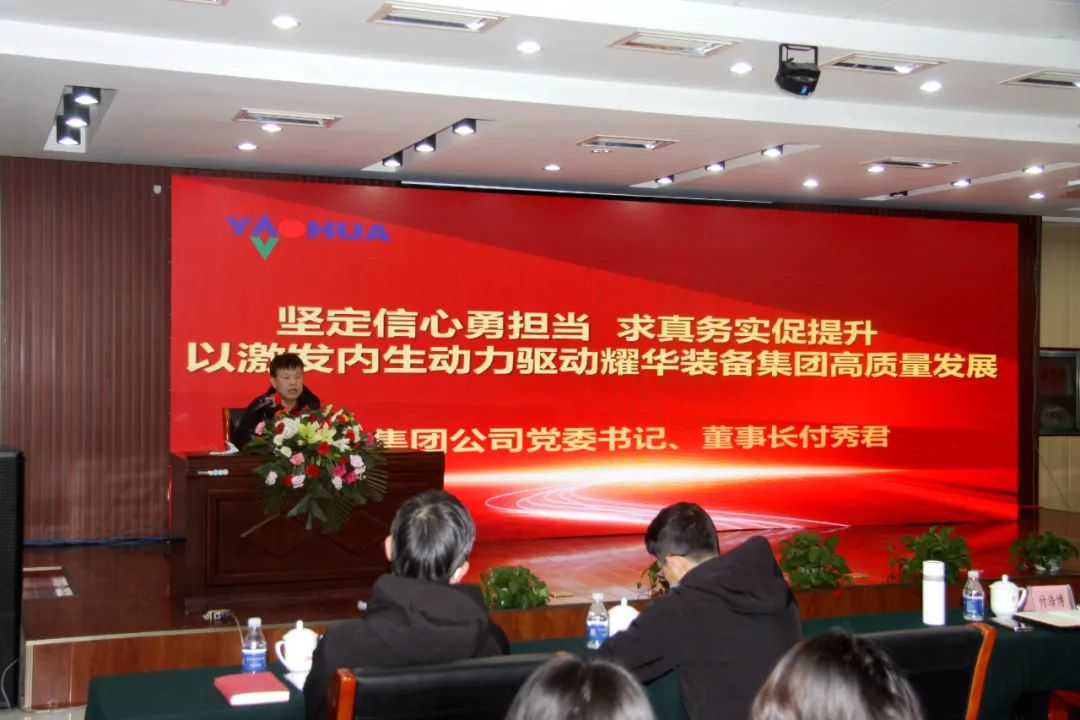 集團公司黨委書記、董事長付秀君同時作了題為《堅定信心勇?lián)?dāng) 求真務(wù)實促提升 以激發(fā)內(nèi)生動力驅(qū)動耀華裝備集團高質(zhì)量發(fā)展》的重要講話。他強調(diào),2023年公司黨委、董事會要以“高”的站位,堅持黨建引領(lǐng);以“強”的信念,堅定戰(zhàn)略自信;以“質(zhì)”的提升,確保增長速度;以“實”的舉措,實現(xiàn)“三效合一”;以“優(yōu)”的標(biāo)準(zhǔn),優(yōu)化干部隊伍,把耀華裝備集團推向更高質(zhì)量的發(fā)展臺階。