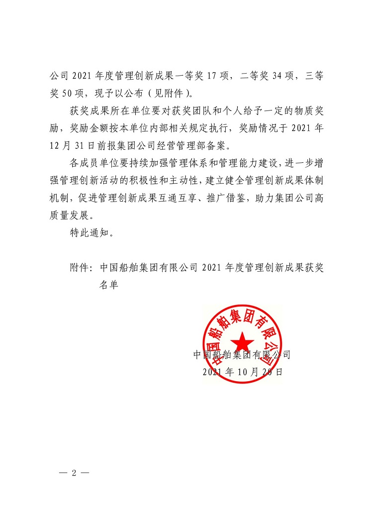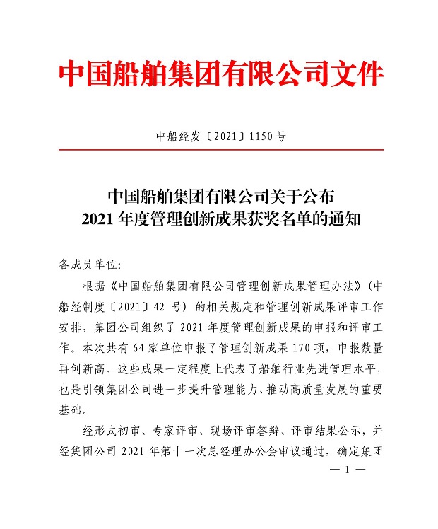 公司參與的海洋項(xiàng)目獲 中船集團(tuán)2021年度管理創(chuàng)新成果二等獎(jiǎng)