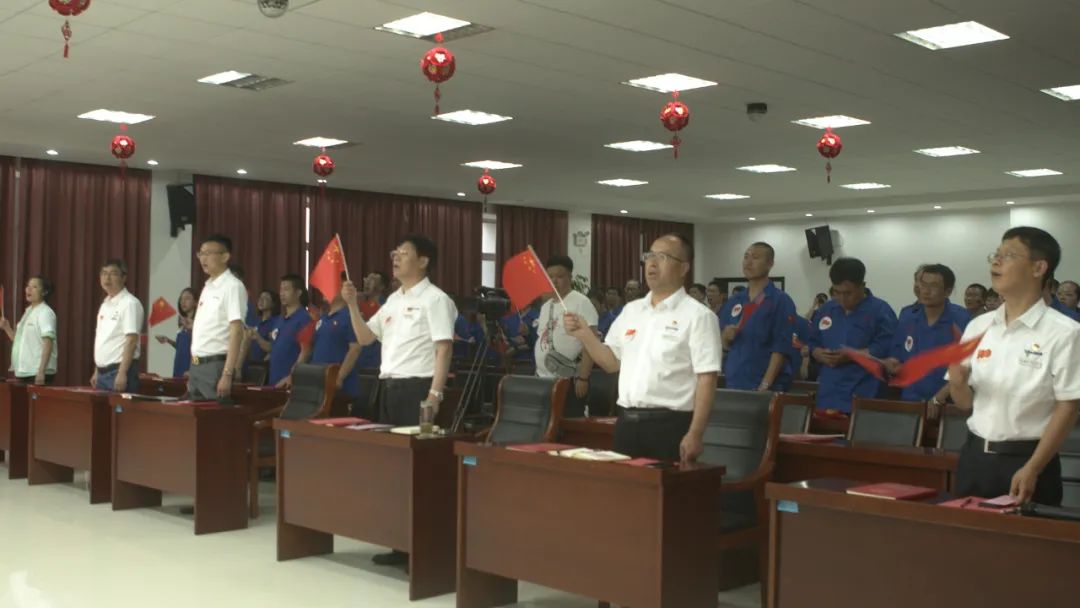 公司黨委書記、董事長付秀君帶領(lǐng)參會黨員重溫入黨誓詞,拉開了紅歌賽的序幕。