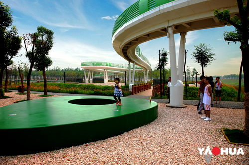 在睢寧城市主干道兩側(cè),本項(xiàng)目充分挖掘復(fù)合材料輕質(zhì)高強(qiáng)、不變形、耐老化的特點(diǎn),喜闕朝禮、休閑亭、廊架、座椅等景觀制品都采用復(fù)合材料制成。設(shè)計(jì)以展示睢寧優(yōu)美的自然和生態(tài)環(huán)境為出發(fā)點(diǎn),挖掘城市文化內(nèi)涵,營(yíng)造極富神韻的地標(biāo)性建筑“靚點(diǎn)”。