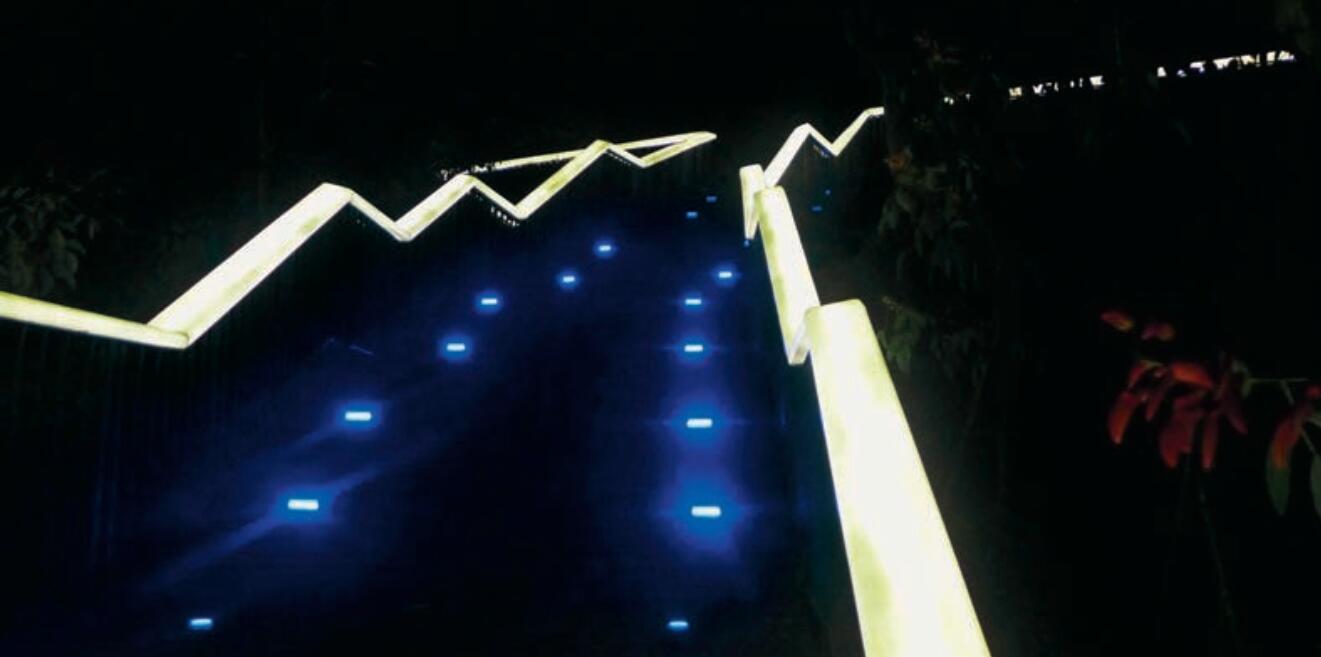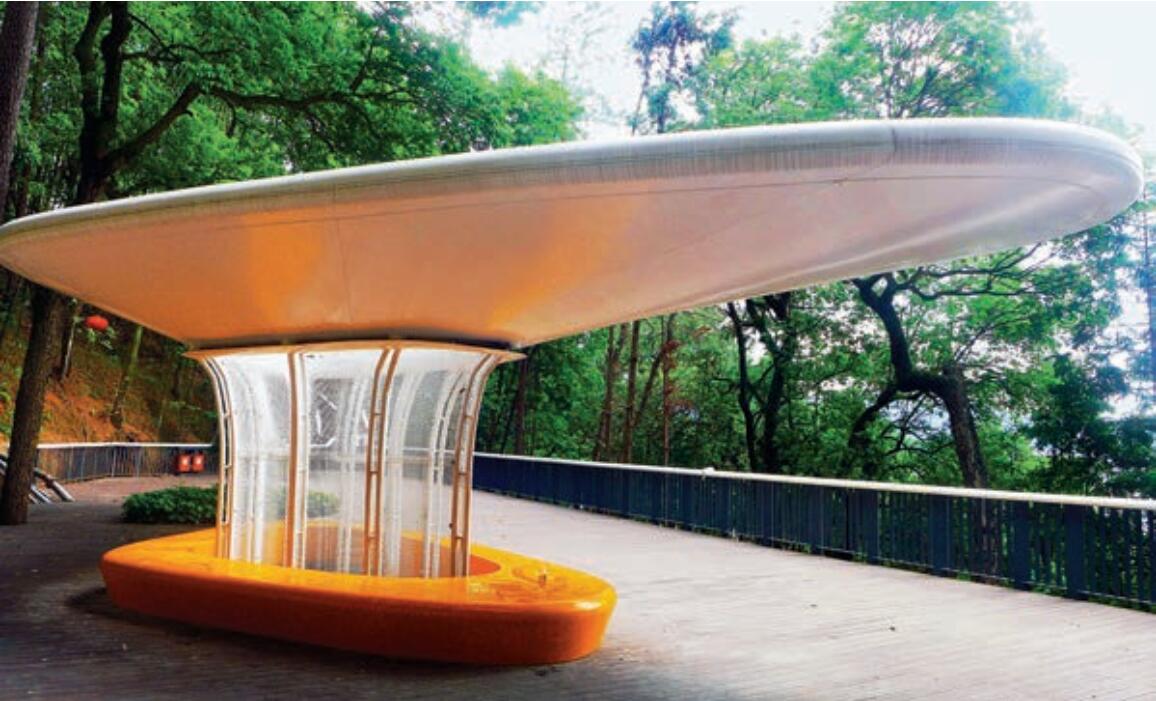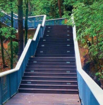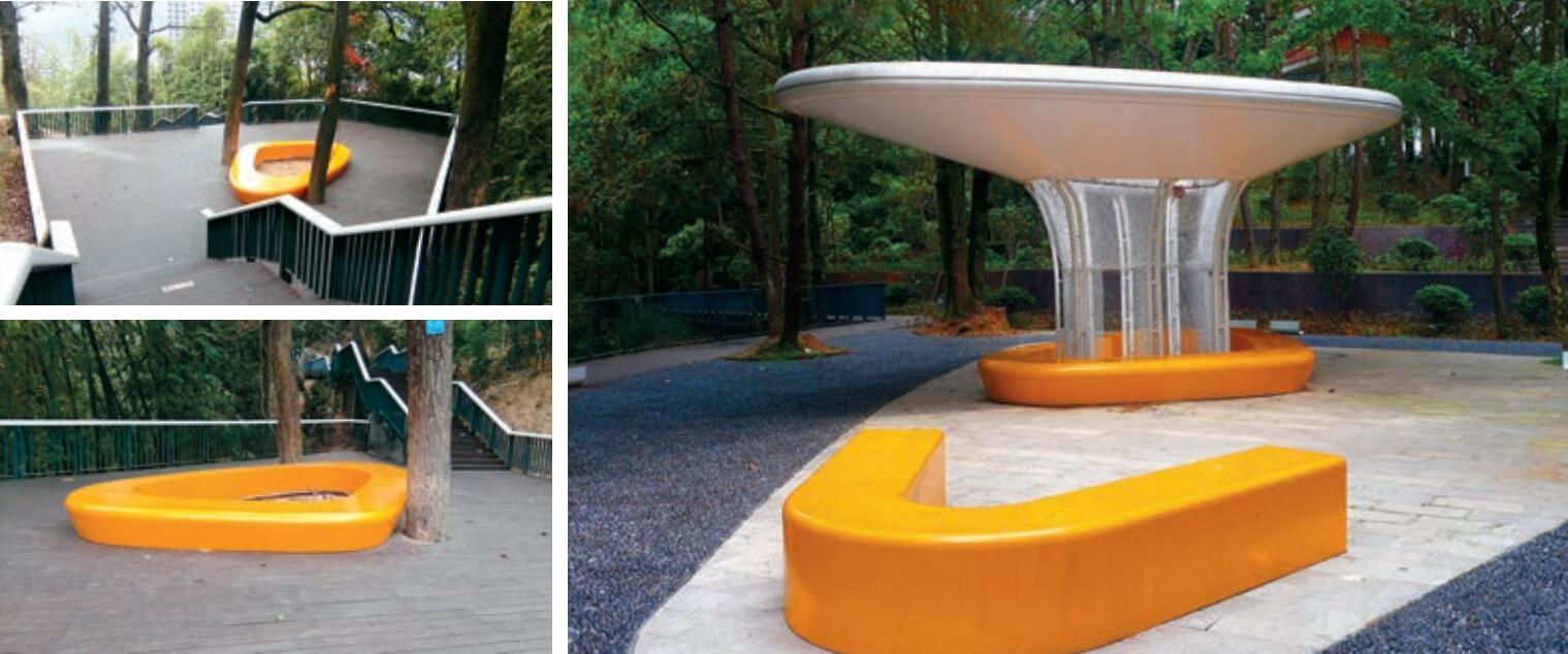 本項目位于福建永定鳳山公園內(nèi),采用復(fù)合材料制作的廊架,造型獨特新穎,在保證結(jié)構(gòu)的穩(wěn)定性的同時,滿足了設(shè)計的造型要求。復(fù)合材料制成的白色透光欄桿扶手,白天宛如一條潔白的絲帶穿系于山體之間,夜間透出柔和的琥珀光,為山體更添異彩。這種復(fù)合材料景觀制品集裝飾與實用為一體,可以廣泛應(yīng)用于開放公園、生活小區(qū)、城市廣場等,為大眾塑造獨具魅力的城市景觀。