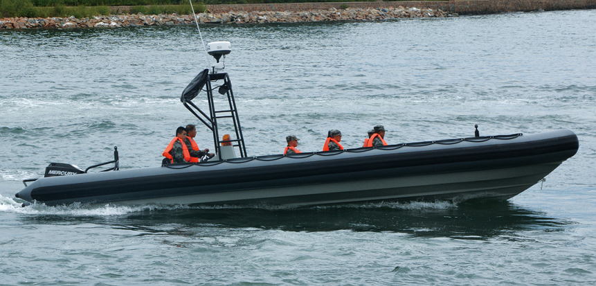 RIB1050型剛性充氣艇用于執(zhí)行沿海水域的工程偵察、巡邏、搜索、救援、交通聯(lián)絡(luò)等任務(wù)。由剛性舟體、充氣浮筒動(dòng)力系統(tǒng)、排水系統(tǒng)等組成,可選配自扶正裝置。具備了剛性舟航速快、強(qiáng)度高和柔性舟穩(wěn)性好、重量輕的優(yōu)點(diǎn),具有水阻力小、防濺性能好,航行速度快、適航性好、操縱靈活、安全可靠、泛水與裝載作業(yè)簡便等特點(diǎn)。